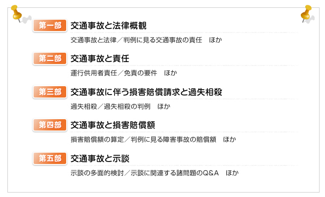 交通事故問題は、事故発生の状況や責任の所在など、さまざまな要因が複雑に絡み合い、解決までに相当な時間と労力が必要になります。交通事故に関連する法律の紹介や、交通事故問題を円滑・円満に解決に向かわせるためのポイントなどを本書から知っていただくことで、万が一に備えるとともに、交通安全について考えるきっかけとしていただければ幸いです。