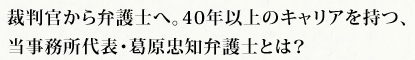 昭和7年大阪市生まれ。関西大学法学部卒業。昭和39年裁判官任官(大阪地裁、福岡地裁、徳島地裁、徳島地裁阿南支部長、福岡地家裁直方支部長として勤務)。福岡地裁、徳島地裁では、会社更生・倒産事件を数多く担当。昭和49年裁判官退官後、菅生法律事務所に勤務、その後パートナー(共同経営者)となり、主として、不動産事件、建設業関係事件、歯科医業関係事件、箕面市法律顧問、病院顧問として諸問題の処理にあたった。平成6年5月に葛原・法常・佐野法律事務所を設立、平成14年9月、事務所を分離し、みお綜合法律事務所を開設。事務所分離後は、JRグループ関係会社、大型ショッピングセンター、不動産仲介業者、料飲業等の会社の顧問を務める。