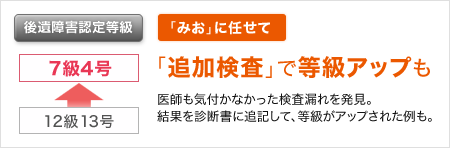 記載内容や検査の「漏れ」を見逃しません。医師が作成した後遺障害診断書などを、豊富な解決実績と医学的知識を持つ弁護士が細かくチェック。適正な後遺障害等級の認定に必要な記載や検査の実施につなげます。