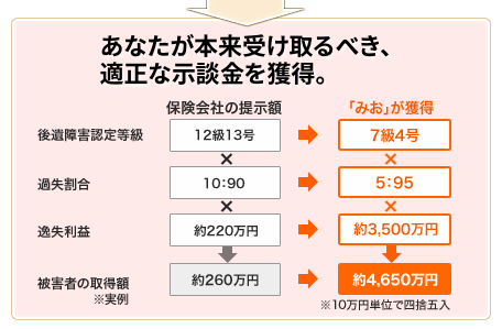 交通事故の交渉を進めます。最低限で算出された示談金を「適正」な金額に。