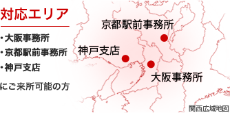 大阪(梅田)、京都(京都駅前)、神戸三宮のどの事務所でもご相談予約いただけます。