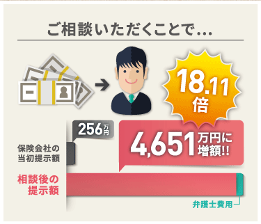 その結果、示談金は当初提示されていた256万円から、その18.1倍となる4,651万円に上昇し、Aさんやご家族も納得する形で無事に示談が成立しました。