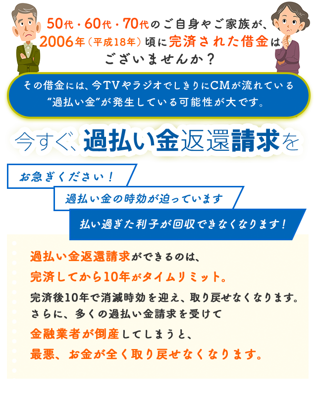 過払い金の可能性や過払い金調査サービスへのお申し込み方法をご案内します。