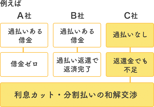 弁護士が金融会社と交渉して、借金の減額と、今後の利息をカットしてもらいます。
