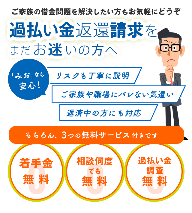 過払い金の可能性はもちろん、疑問や不安にもお答えいたします。