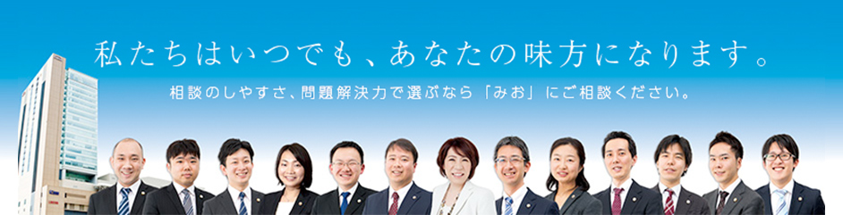 先の見えない借金苦に、死を考えた事もありましたが残された家族に申し訳ない!私以上に辛い思いをする!と思うと、死にきれなかったのです。そんな時ラジオで聞いた、痛みの分かる弁護士さんの声に背中を押され、みお綜合法律事務所をたずねました。今は夢の様です。