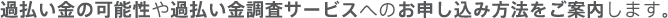 過払い金の可能性や過払い金調査サービスへのお申し込み方法をご案内します。